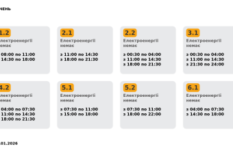 Група 1.2. Електроенергії немає з 08:00 до 11:00, з 14:30 до 18:00.