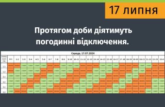17 липня, за розпорядженням НЕК "Укренерго", через значний дефіцит потужності впродовж доби у Львові та області будуть застосовано погодинні вимкнення.