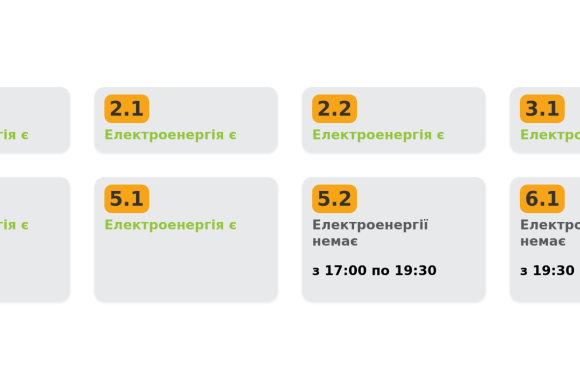 Група 5.2. Електроенергії немає з 17:00 до 19:30.