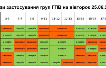 25 червня, за розпорядженням НЕК „Укренерго“, через значний дефіцит потужності буде застосовано додаткові вимкнення.
