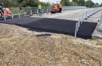 На об’єкті виконали: монтаж металевих балок прогонової будови; влаштування монолітної залізобетонної плити; бетонування конусів мосту; влаштування перильного та бар’єрного огородження.