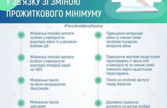 Крім того, збільшено мінімальні пенсійні виплати, зокрема, шахтарям, особам з інвалідністю внаслідок війни та учасникам бойових дій, особам з інвалідністю внаслідок ліквідації аварії на ЧАЕС, а також надбавки, доплати, підвищення деяким категоріям громадян.