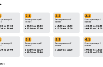 Група 6.1. Електроенергії немає з 09:30 до 13:00, з 20:00 до 22:00.