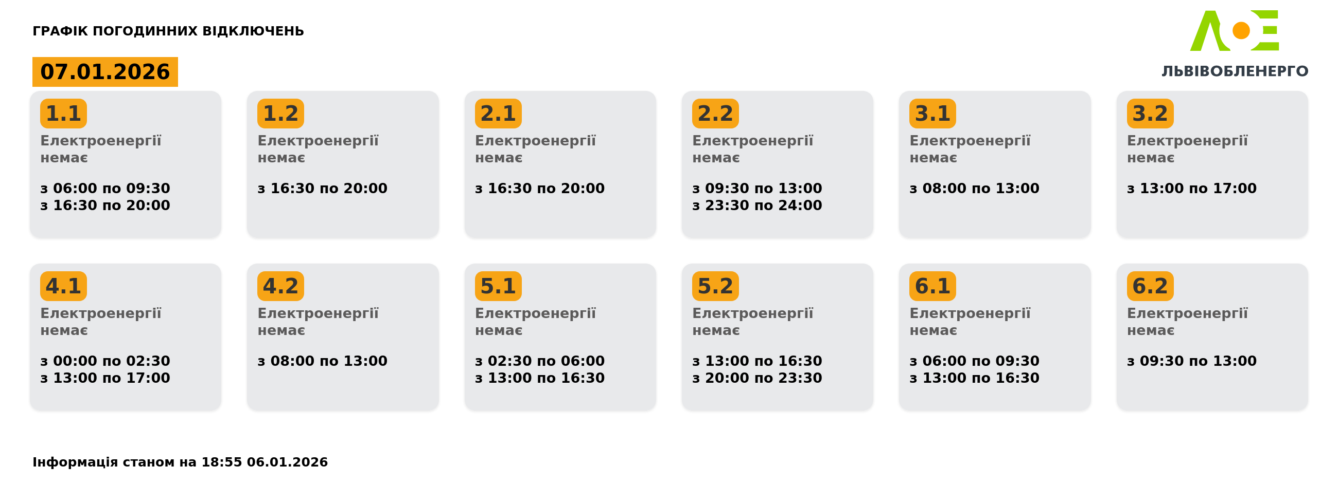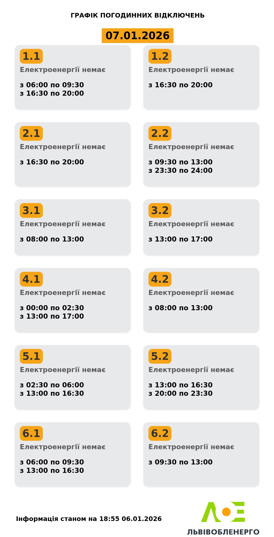 ГРАФІК ПОГОДИННИХ ВІДКЛЮЧЕНЬ ЕЛЕКТРОЕНЕРГІЇ у Львівській області 7 січня