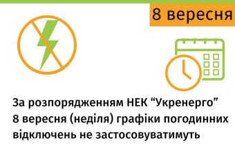 8 вересня «Укренерго» не планує вимикати електроенергію нікому