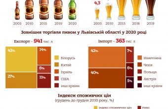 Частка Львівщини з виробництва пива в Україні зросла з 4,3% у 2005 році до 10,1% у 2019 році.