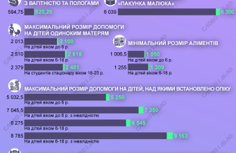 Також закон встановлює не лише мінімальний розмір аліментів, але й максимальний. Він складає 10 прожиткових мінімумів для дитини відповідного віку.