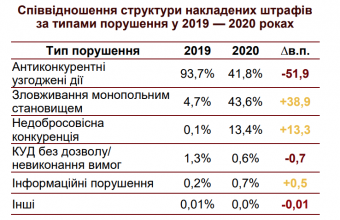 Про п'ятірку найбільших штрафів у 2020 році Антимонопольний комітет України повідомив у своєму річному звіті, пише DailyLviv.