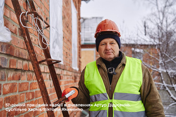 Учасники програми «Армія відновлення» в прифронтових Дергачах не тільки захищають від руйнувань пошкоджені будинки, а й виготовляють маскувальні сітки, окопні свічки та допомагають тим, хто залишився.