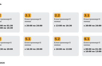 Група 2.2. Електроенергії немає з 13:00 до 16:30.