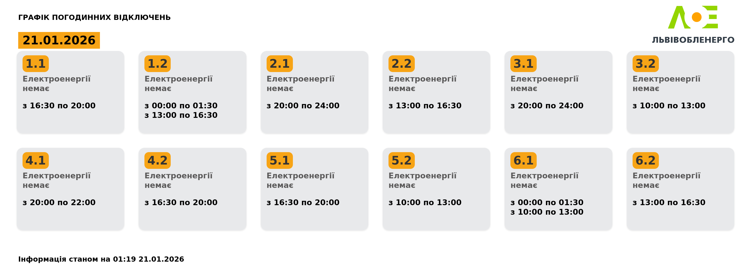 Читайте також про два попередні варіанти графіка погодинних вимкнень електроенергії у Львівській області 21 січня: