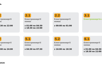 Група 2.1. Електроенергії немає з 01:00 до 04:30, з 18:30 до 22:00.