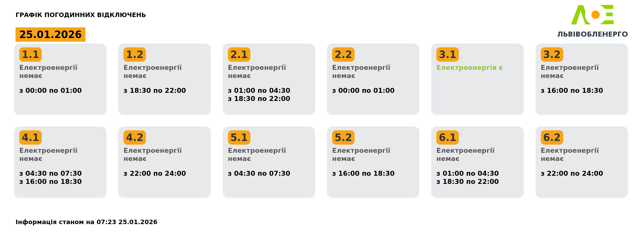 Графік погодинних відключень на 25.01.2026