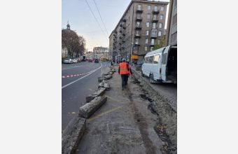У центрі міста, біля готелю «Львів», на зупинці громадського транспорту для зручності пасажирів розширюють посадкову платформу.
