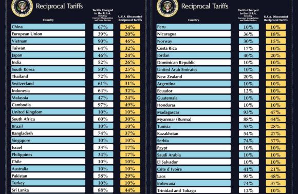 Білий Дім опублікував повний перелік тарифів, повідомляють американські ЗМІ, пише DailyLviv.com.