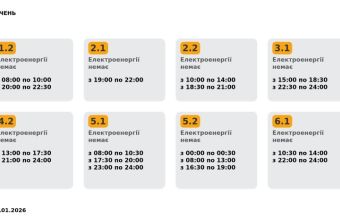 Група 1.1: замість відключення з 10:30 до 17:30 електроенергії не буде лише з 14:00 по 16:30.