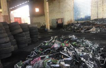 Купа наскладаних шин, не менша купа випалених з них “дротиків”, дуже неприємний запах в повітрі і чорна жижа (інфільтрат) під ногами. Рештки випалених шин лежать під відкритим небом, тож з дощами у грунт йде ця “гумова сажа”, чорне все навкруги – трава, земля, калюжі і навіть маленький песик-охоронець.