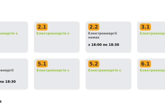 Група 2.2. Електроенергії немає з 18:00 до 18:30.