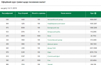 Такі дані оприлюднили на сайті Національного банку України.