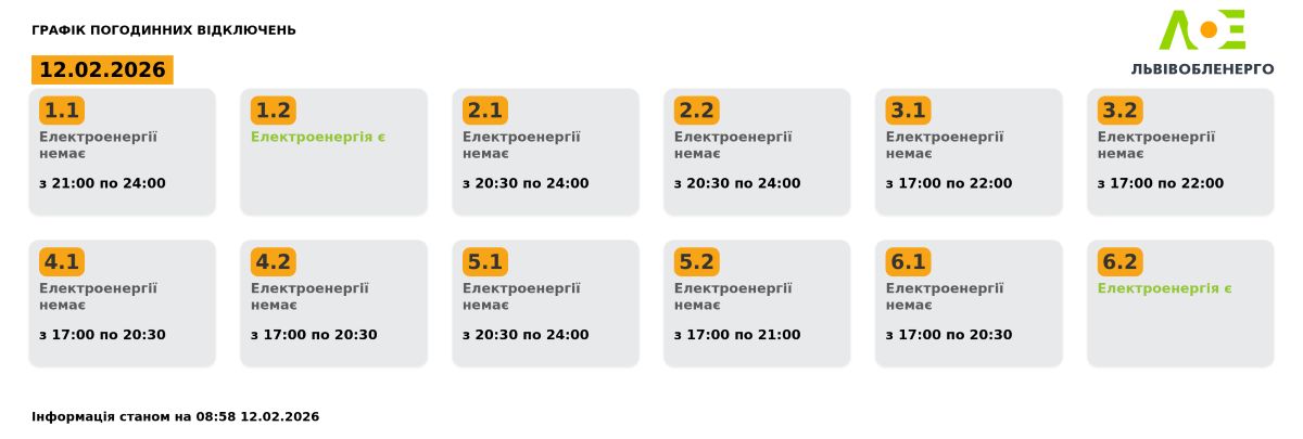 Графік погодинних відключень на 12.02.2026