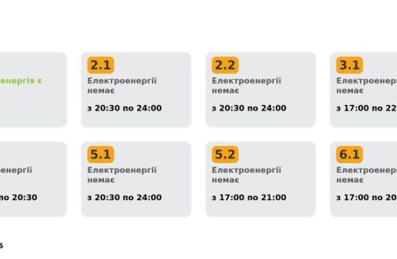 Група 6.1. Електроенергії немає з 17:00 до 20:30.