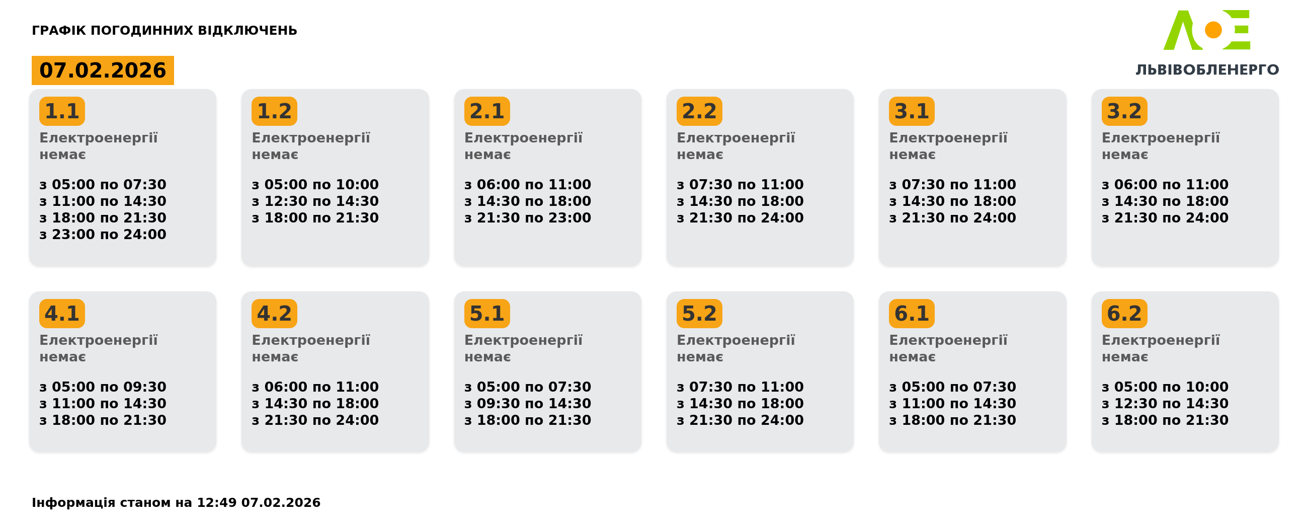 Динамічні зміни у графіку погодинних відключень світла 7 лютого на Львівщині