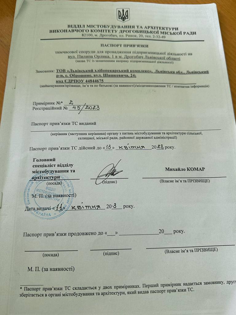 Посадовці Дрогобицької міськради надали 11 паспортів на розміщення торгових точок компанії ексрегіонала ТМ «Кулиничі».