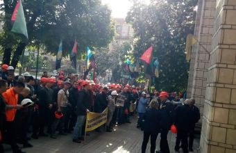 У Києві під будівлею міністерства енергетики і вугільної промисловості протестують приблизно 350 гірників.