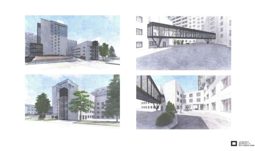 «Йдеться про влаштування горизонтального переходу – містка між корпусами будівлі, а також влаштування ліфтової шахти з зовнішньої сторони об’єкта», – зазначив Роман Крушельницький.