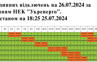 За розпорядженням "Укренерго", у п'ятницю, 26 липня, заходи обмеження споживання електроенергії будуть діяти так: