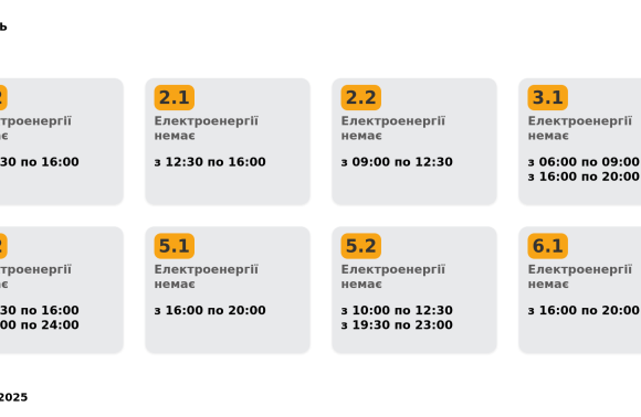 Усі 12 підгруп споживачів впродовж доби не матимуть електроенергії від 3,5 до 7 годин.