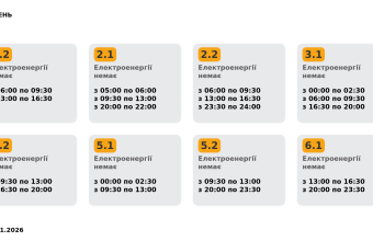 Група 3.1. Електроенергії немає з 00:00 до 02:30, з 06:00 до 09:30, з 16:30 до 20:00.
