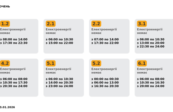 Графік вимкнення електроенергії станом на 00:27 23.01.2026: