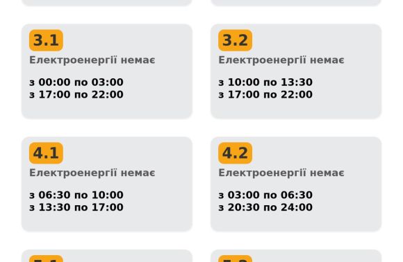 Графік погодинних вимкнень електроенергії на Львівщині 22 січня: