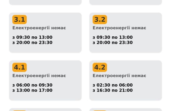 Графік відключень електроенергії у Львівській області зі загальною тривалістю (24.12.2025):
