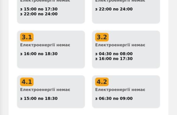 У групі 6.2 скасували вимкнення, яке було заплановано з 18.00 до 20.00, а в групі 5.1 не буде відключення з 20.00 до 22.00.