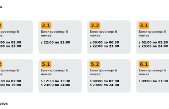 | 6.1 | 19:30 – 22:00 | Скасовано вечірнє | Світло буде весь вечір |