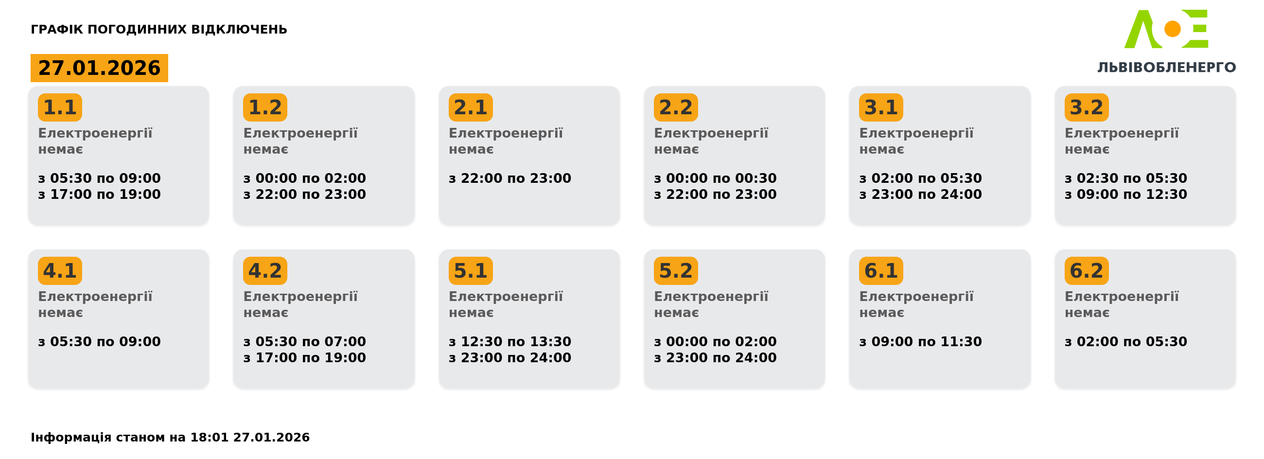 Львівобленерго скоротило графік погодинних відключень на 27.01.2026, пише DailyLviv.com.