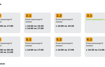 Група 1.1. Електроенергії немає з 10:30 до 14:00.