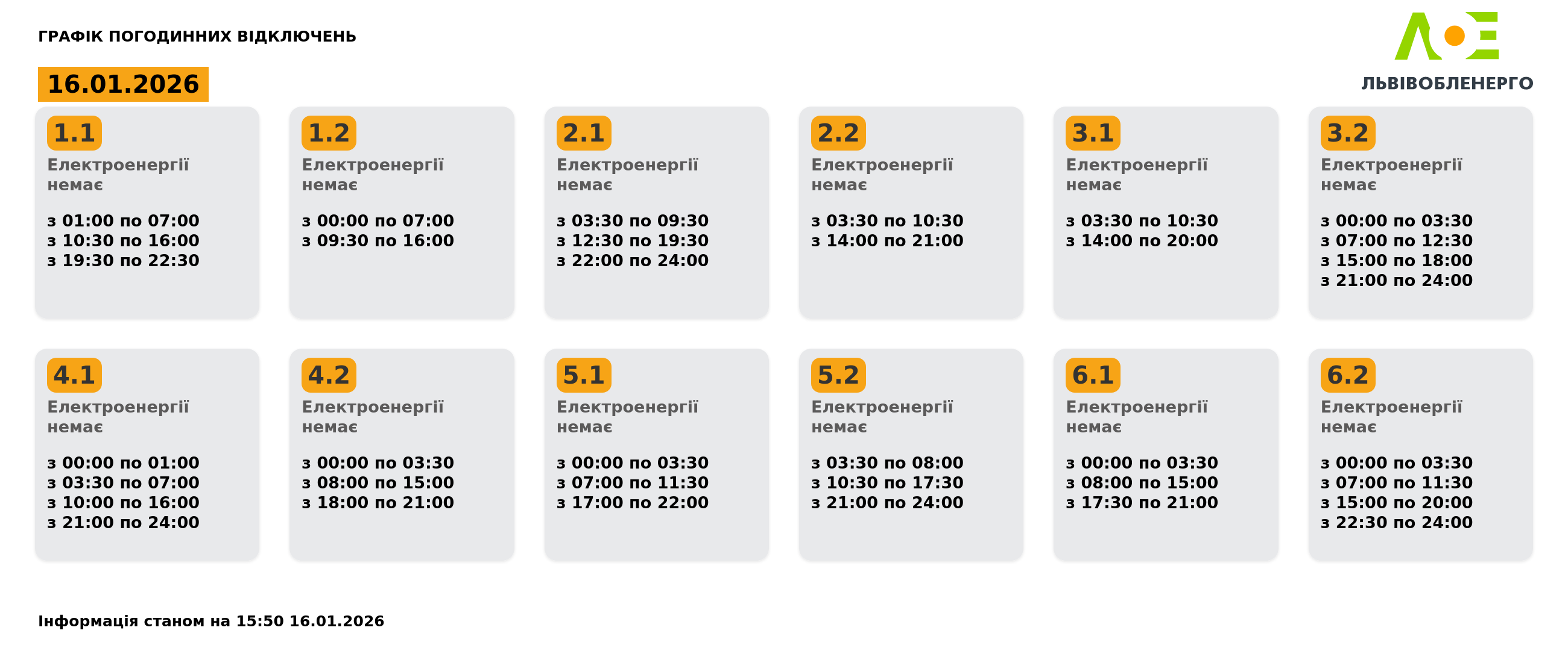 Львівобленерго скоригувало графік погодинних відключень на 16.01.2026, пише DailyLviv.com.