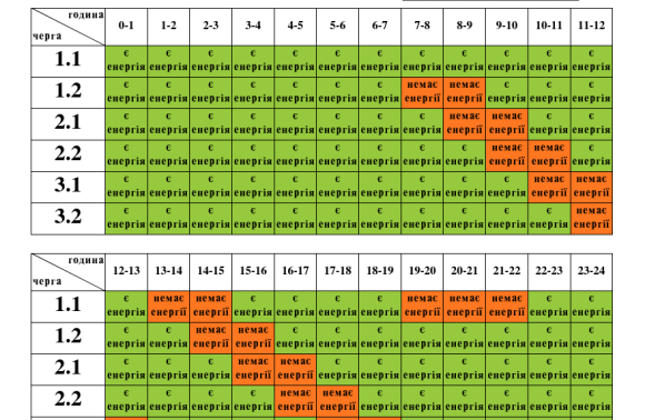 Для всіх шести груп споживачів світла не буде по 4-5 годин за добу.