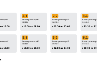 Найдовше без світла будуть черги 1.1, 2.2, 4.2 та 5.1 (по 3.5 години).