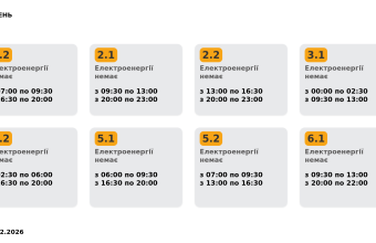 Група 5.2. Електроенергії немає з 07:00 до 09:30, з 13:00 до 16:30.