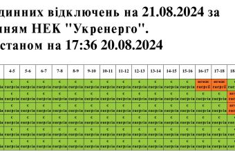 Графік вимкнень електроенергії на Львівщині 21 серпня