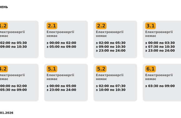 Стартовий графік вимкнень електроенергії 20 січня на Львівщині