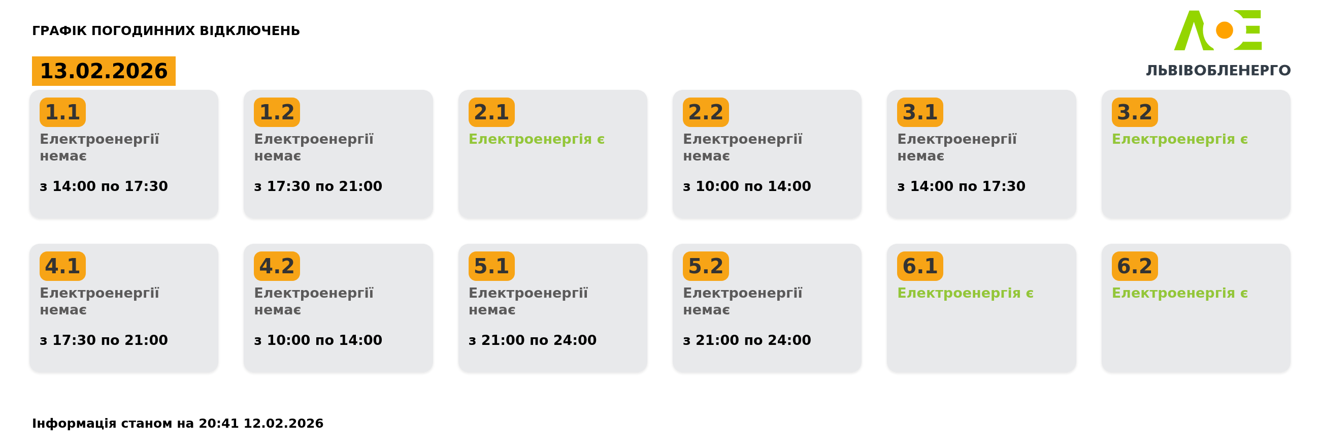 Початковий варіант ГПВ у Львівській області у п'ятницю, 13 лютого.
