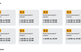 Група 5.1. Електроенергії немає з 09:00 до 12:30, з 19:30 до 22:00.