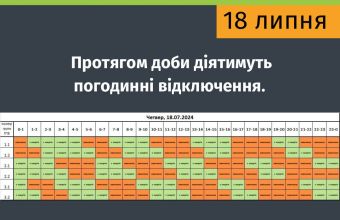 18 липня, за розпорядженням НЕК "Укренерго", через значний дефіцит потужності впродовж доби у Львові та області будуть застосовано погодинні вимкнення.