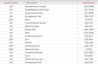 Такі дані опублікували на сайті Національного банку України.
