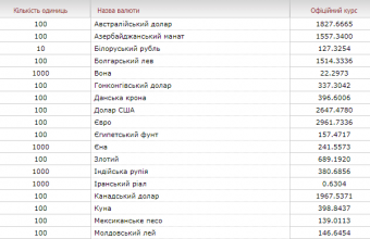 Такі дані опублікували на сайті Національного банку України.